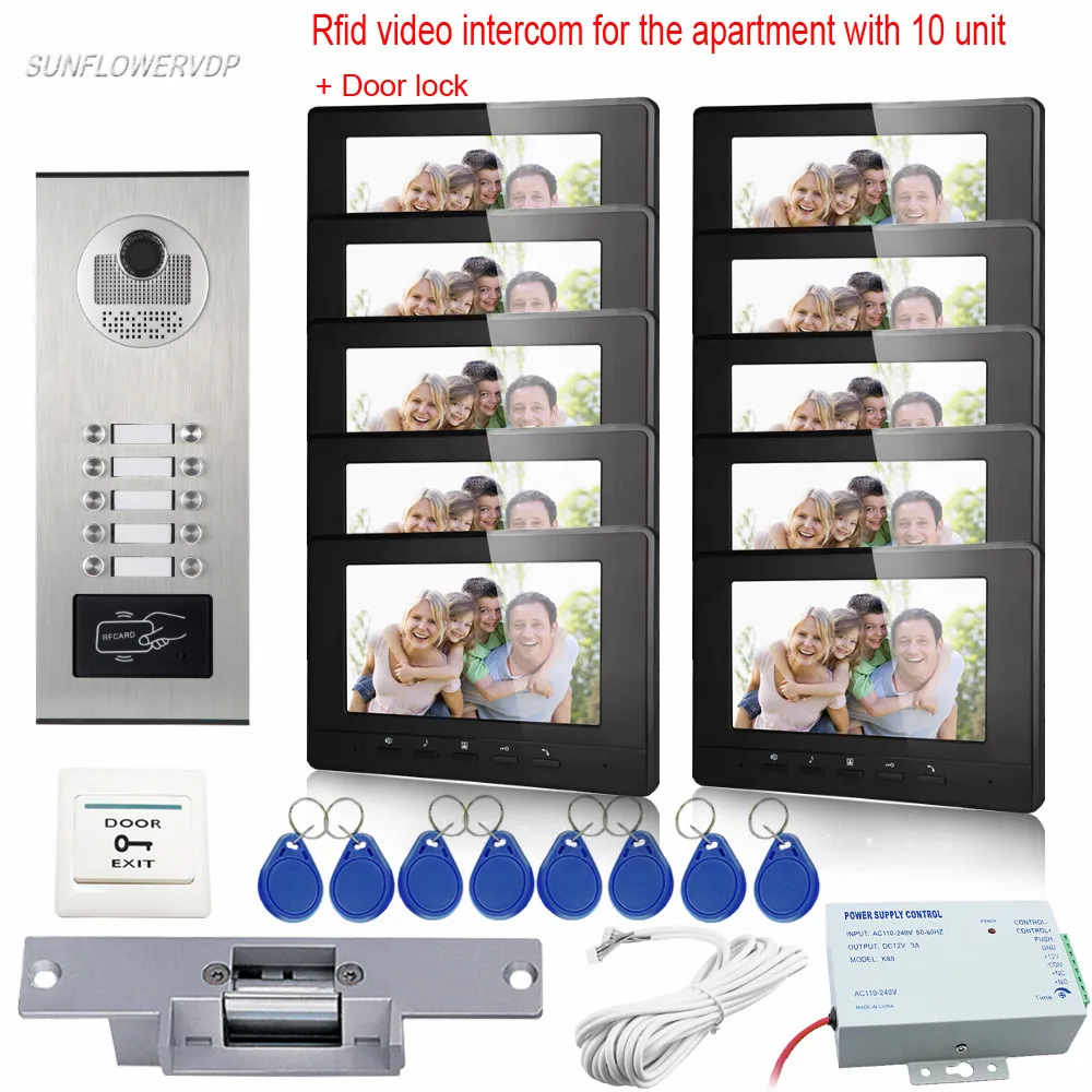 .Gallery of Video Intercom Rfid Cards For 10 Apartments Video Camera 7" Color Monitor Intercom Camera 10 Buttons Door Phone With Door Lock